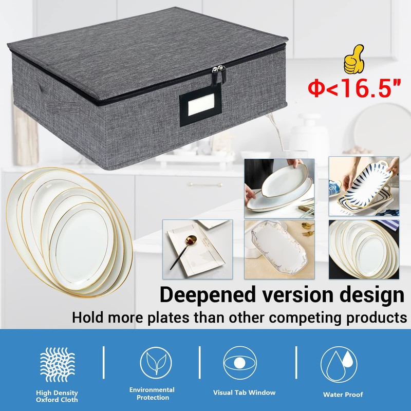 - 🐟Perfect design:The plate storage container can hold four platters,size 17*13*5.3 inch.4 large felt dividers are included to help keep serving platters from bumping into each other.