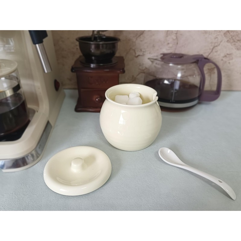 Homyne 1 Sugar Bowl with Lid and Spoon for Coffee Bar Accessories, Sugar Jar with Lid and Spoon (Creamy White)