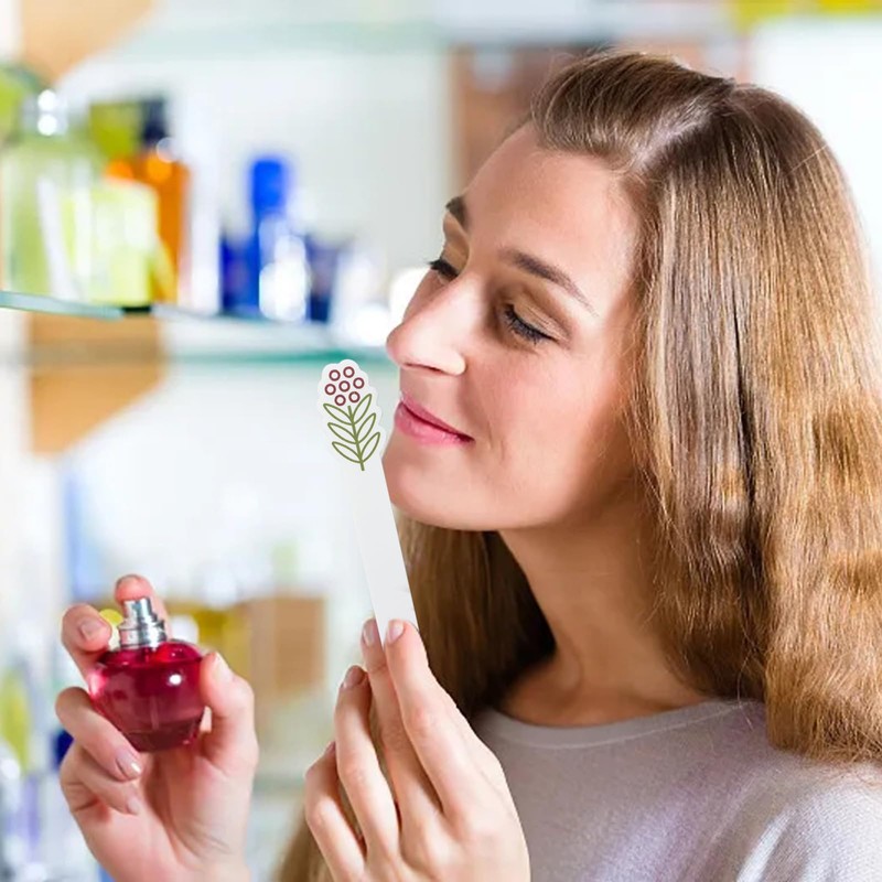 Honbay 100PCS Fashion Flower Disposable Perfume Test Strips Essential Oils Paper Test Strips Smelling Test Paper White Testing Strips Aromatherapy Fragrance Tester Strips