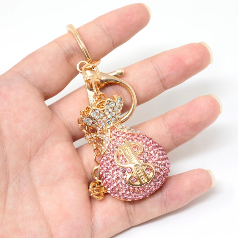 - Package includes: 1PCS Sparkling Rhinestone Dollar Symbol Keychain( come with a gift box)