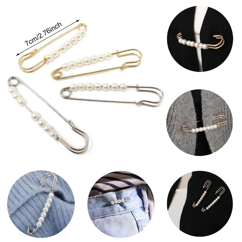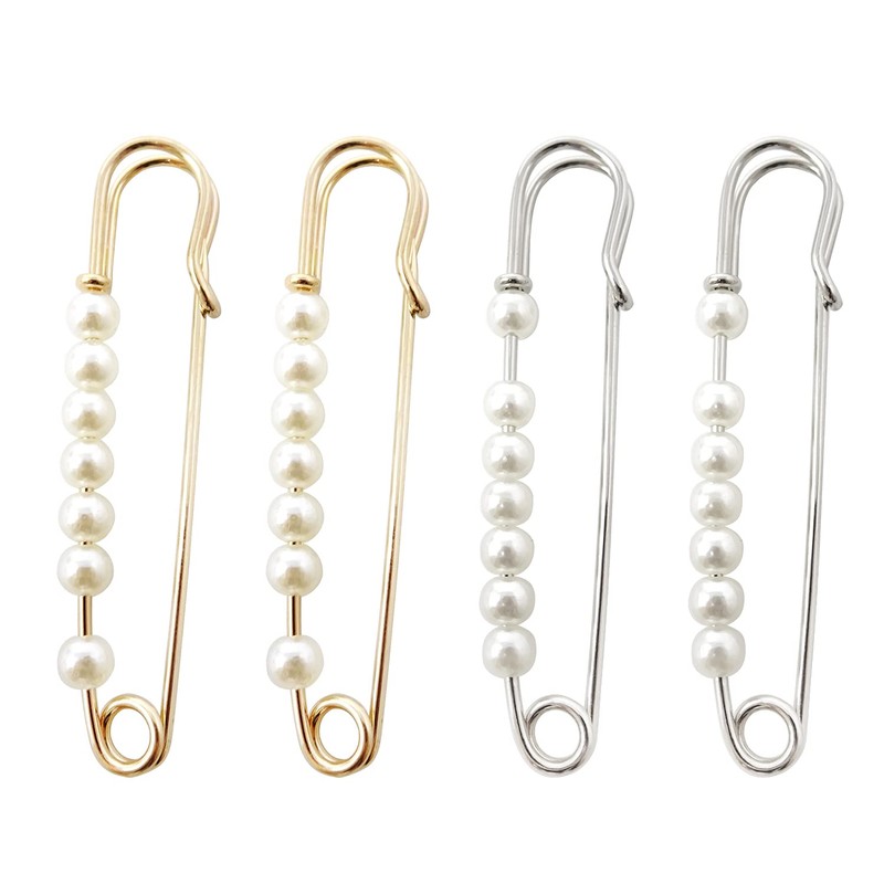 - Package includes: 4pcs faux pearl brooch pins(2pcs gold + 2pcs silver)