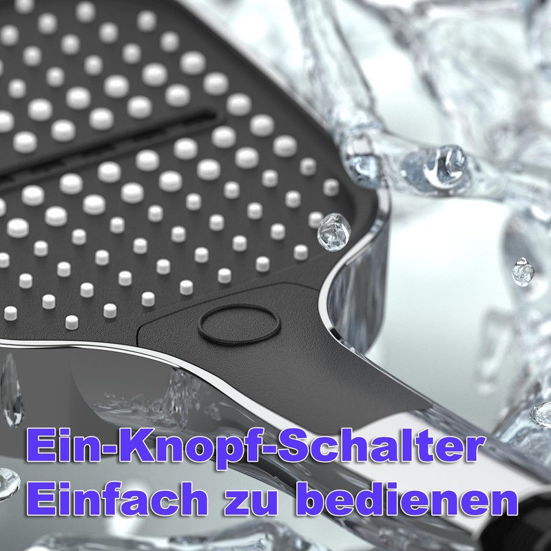 Product description Experience your shower with our powerful hand shower head - ideal for anyone who appreciates comfort, design and functionality. With a generous shower panel of 11 × 13 cm, this shower head ensures a wide water distribution and a pleasant shower feeling. The three selectable jet types - rain, spray mist and mixing mode - can be easily switched at the touch of a button and adapt flexibly to your needs. Thanks to the production of high-quality ABS plastic, the shower head is robust, durable and at the same time pleasantly light. The silicone nozzles are limescale repellent and very easy to clean - simply wipe with your fingers, the shower head is clean again. This makes it the ideal choice for hard water areas. The ergonomic shape ensures comfortable handling - even during prolonged use. Thanks to the standard G1/2 connection, the shower head is compatible with all standard shower hoses and can be mounted in seconds without tools - ideal for rented accommodation, renovations or as a practical replacement shower head. Technical data: Product type: hand shower/shower head spray types: rain, mist, mixing mode material: ABS plastic nozzle type: anti-limescale silicone nozzles size of the shower head: 11 × 13 cm connection: standard G1/2 inch (fits all standard shower hoses) installation: tool-free, quick and easy