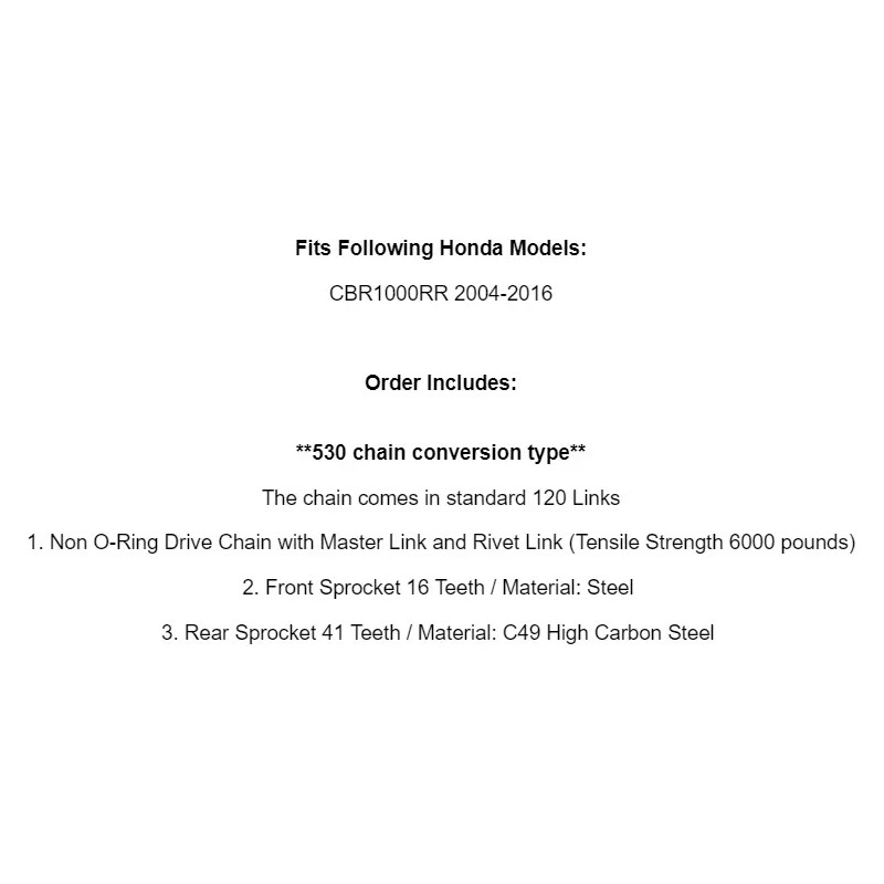 Honda Black Drive Chain And Sprocket Kit for Honda CBR1000RR 2004-2016 530-Chain