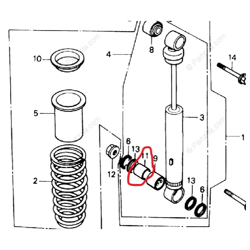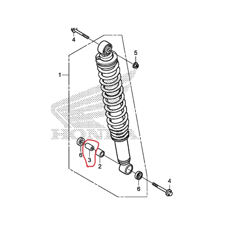 Honda TRX250R,FL400R PILOT, TRX400EX, TRX400X FRONT SHOCK BUSHING COLLAR 52486-KB7-003
