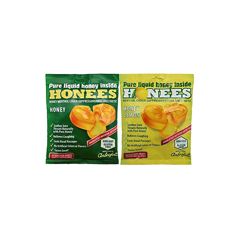 Honees Cough Drops 2 Flavors Honey and Honey Lemon 2 Pack Total 40 Drops