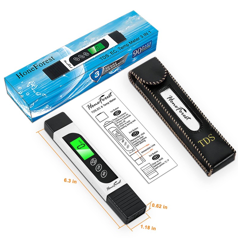 HoneForest Water Quality Tester, Accurate and Reliable, TDS Meter, EC Meter & Temperature Meter 3 in 1, 0-9990ppm, Ideal Water Test Meter for Drinking Water, Aquariums, etc.