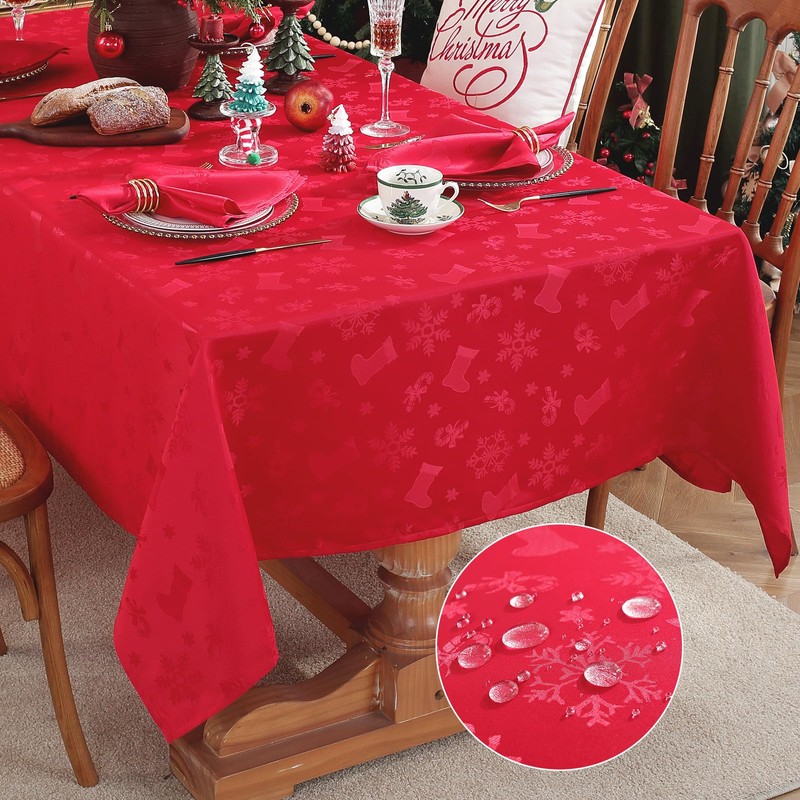 - MULTIPURPOSE TABLE DECORATION: Our Jacquard damask tablecloths are versatile, suitable for a variety of settings from kitchen dining and banquets to parties and restaurants. They're also ideal for both indoor and outdoor events, making them perfect for Christmas, winter, and holiday celebrations. Add a touch of PREMIUM QUALITY to every mealtime.