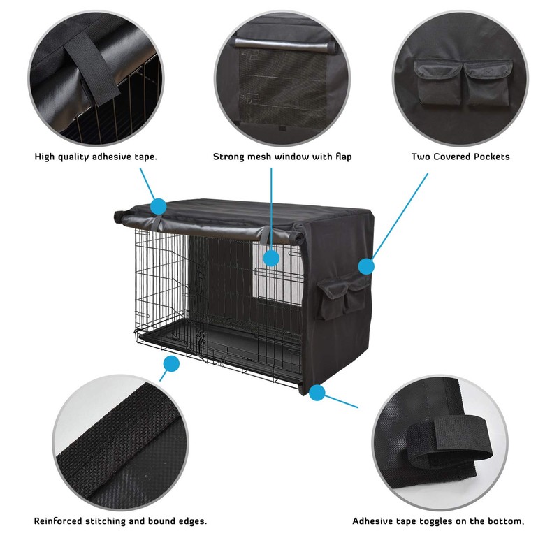 - Four adhesive tapes on the bottom to fix the dog kennel cover, these will be useful if your dog likes to bite and drag the cover.