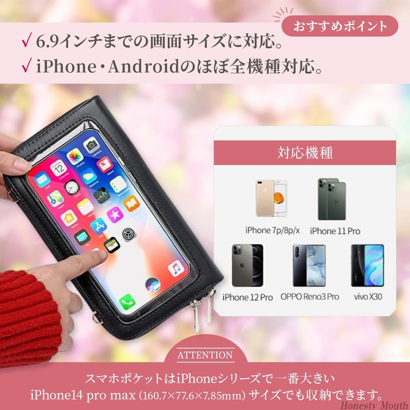 - [Product Details] It can hold large smartphones, and it is compatible with touch panels so you can use it as is. It also has a wallet function, so it is recommended for leisure and outdoor activities as well as for a short outing