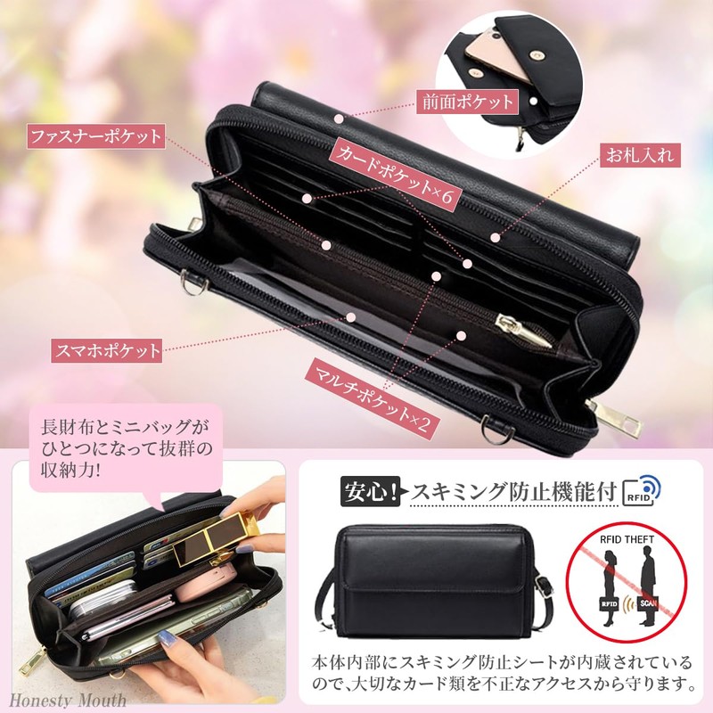 - [Features] A shoulder bag with integrated smartphone and wallet in a large size 3-way design. Long and short with 2 kinds of straps can be used as a shoulder bag, handbag, or bag-in-bag