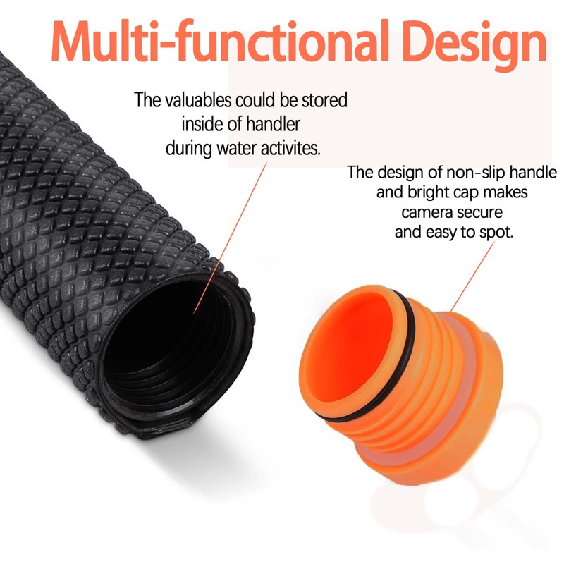- 🏄♂️ 【Multi-functional Design】: Apart from providing a secure hold for your camera, the watertight compartment in the grip can also be used to store small valuable items and keep them dry. Equipped with anti-loss ropes, you can enjoy the thrill of the underwater world without worrying about losing your camera.