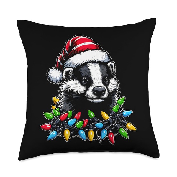 Honey Badger Ratel Christmas Hat Xmas Throw Pillow