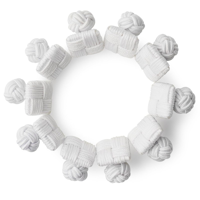 HONEY BEAR 5 Pairs Mens/Women Silk Fabric Knot Twisted Cufflinks Set, for Shirt/Dress Business Wedding Accessories,Square Shape (White with box)