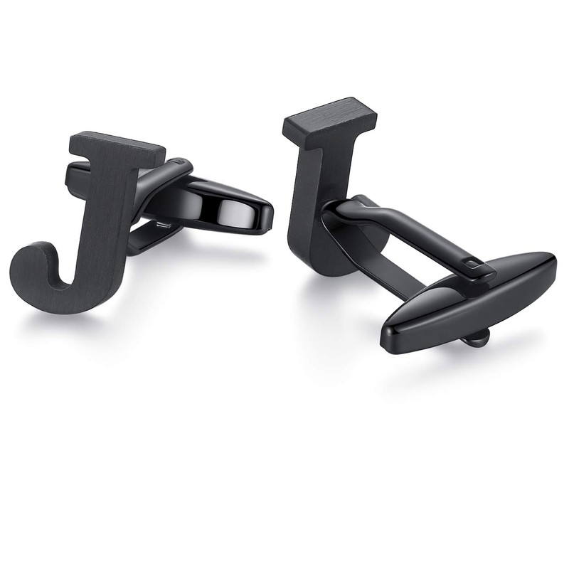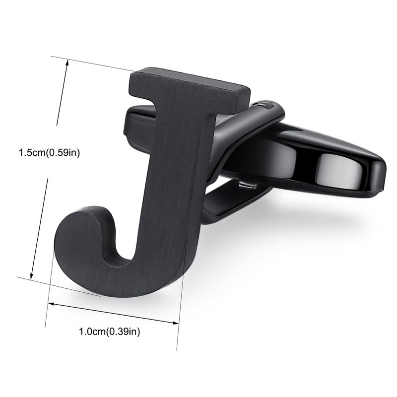 Honey Bear Initial Alphabet Letter Mens Cufflinks Tie Clips Set Black (J)