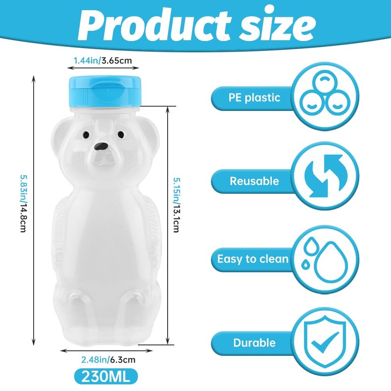 - 【CUTE AND LEAKPROOF DESIGN】 The shape of the bear is very cute. The honey bear cup is the right size for the to hold easily. The straw is in close with the bottle cap hole and will not leak easily.