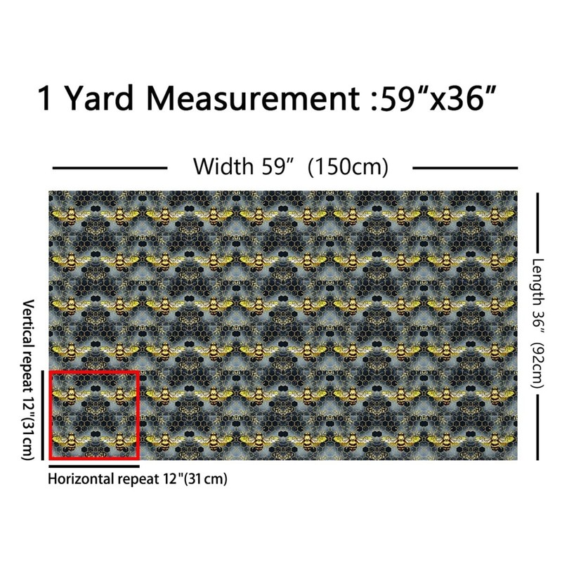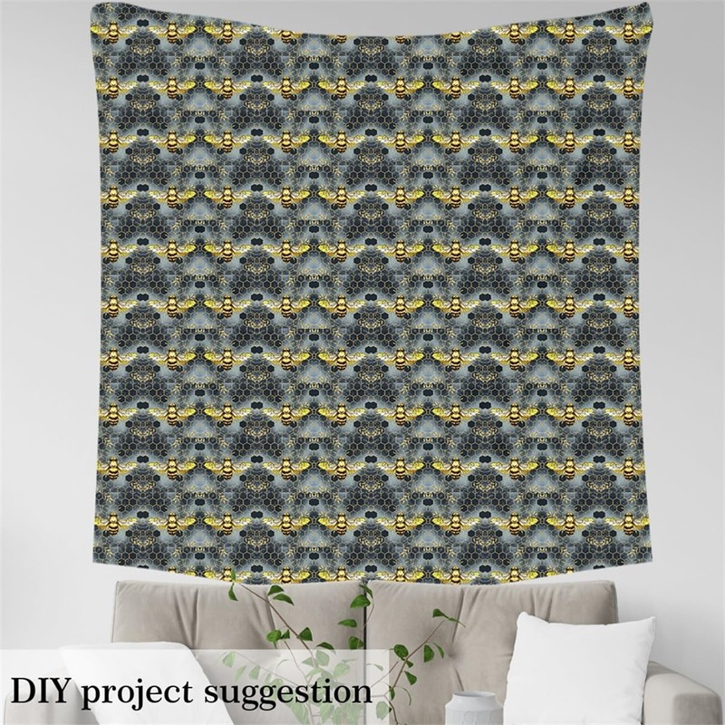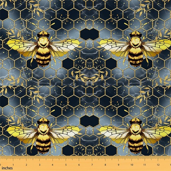 Honey Bee Fabric by The Yard, Geometric Honeycomb Marble Print Upholstery Fabric for Chairs, Modern Hexagon Cute Bee Decorative Fabric for Upholstery and Home DIY Projects, 2 Yards, Golden Blue