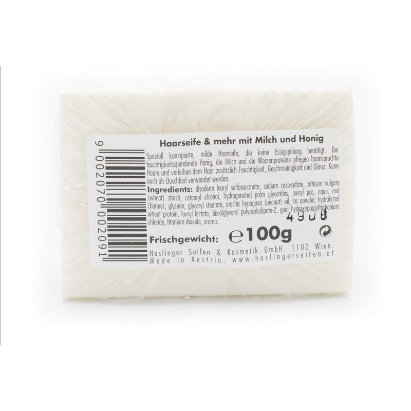 - The moisturising honey, milk and wheat proteins nourish stressed hair and give the hair additional moisture, suppleness and shine. Suitable for all hair types. The soap can also be used as a shower/bath soap.