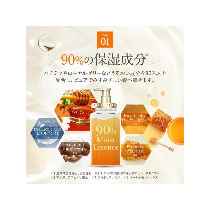 - Deep Moisturizing: This organic Shampoo & Treatment deeply hydrates and nourishes dry, damaged hair with organic blend of high quality honeys, including 50% manuka honey, 30% acacia honey, and 20% Japanese raw honey. Gently cleanses exceed oil & impurities of hair & scalp.Contains more than 90% moist essence:Leaves hair hydrated strong & healthy.