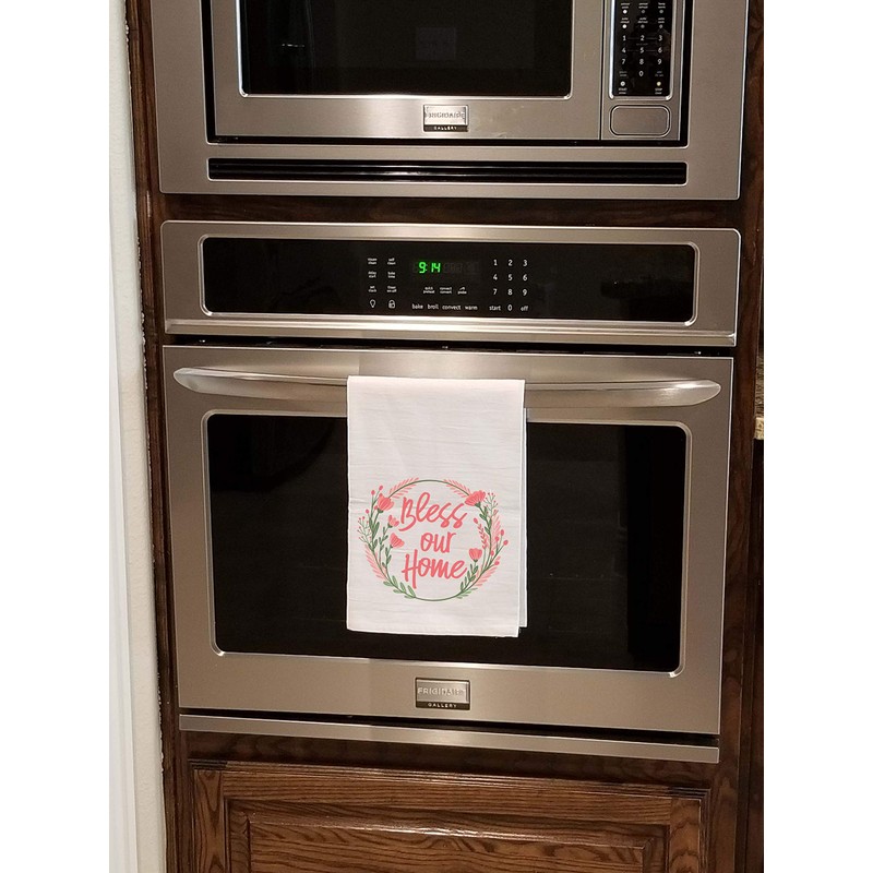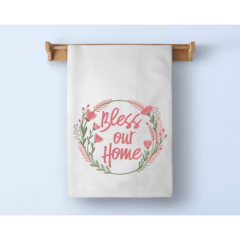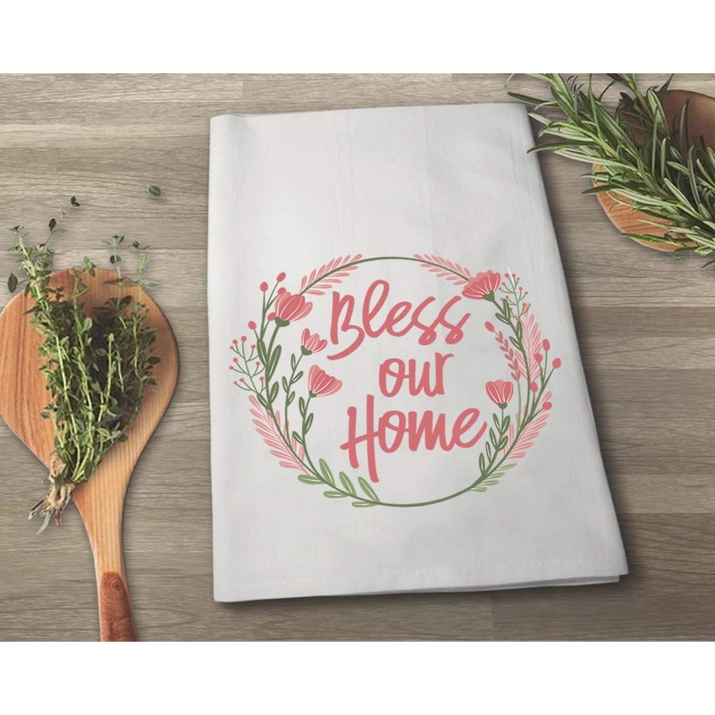 Honey Dew Gifts Multi-Purpose Towel, Bless Our Home Flour Sack Towel, 27 inch by 27 inch, 100% Cotton, Highly Absorbent, Multi-Purpose Kitchen Dish Towel