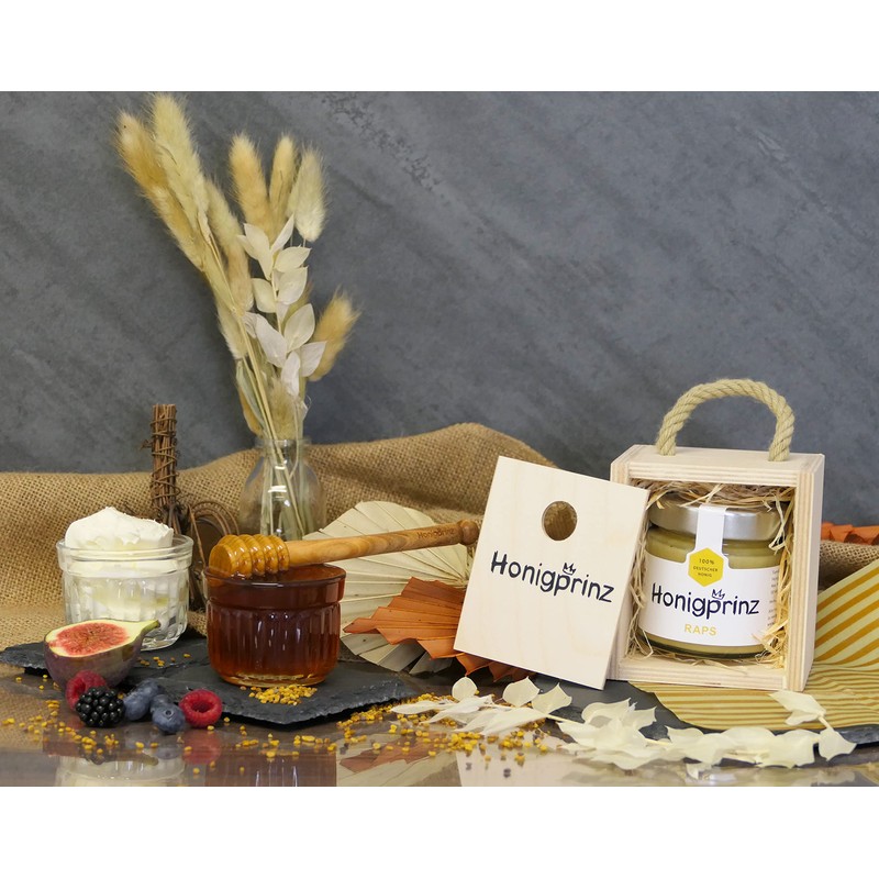 Honey Gift Set "Wooden Box with Cord" - 100% German Honey Honigprinz Family Beekeeping (1 x 250 g)