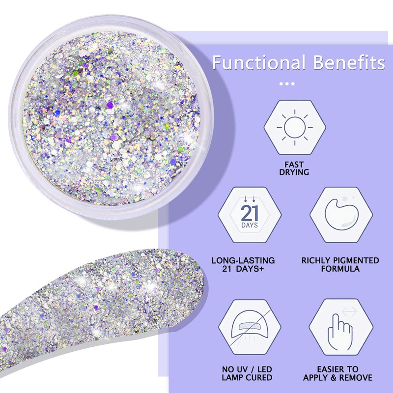 - Item Name: Fine Dipping Powder with Shine Silver Gray Glitter Hexagon Sequins, Easy to be Applied with Dip Nail Liquid to Coated on Nails.