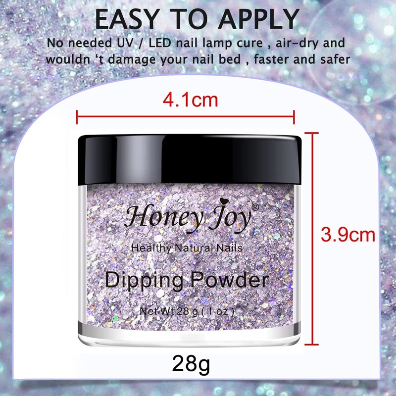 Honey Joy 28g/Box Silver Gray Shine Glitter Hexagon Sequins Paillette Dip Powder Nails Dipping Nails Long-Lasting Nails No UV Light Needed (HJ-ND064B-No.133)