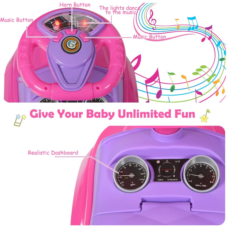 Honey Joy 3 in 1 Ride on Push Car Toddler Stroller Sliding Car w/Music Pink