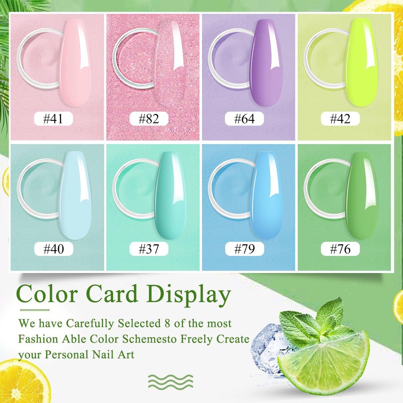 Honey Joy Honey Joy 8pcs/set Fine Dipping Powder Dip Kit Powder Nail Color System,Summer Light Pink Violet Yellow Purple Green Blue,Like Gel Polish Effect, Even & Smooth Finish (Dip-8pcs-05)