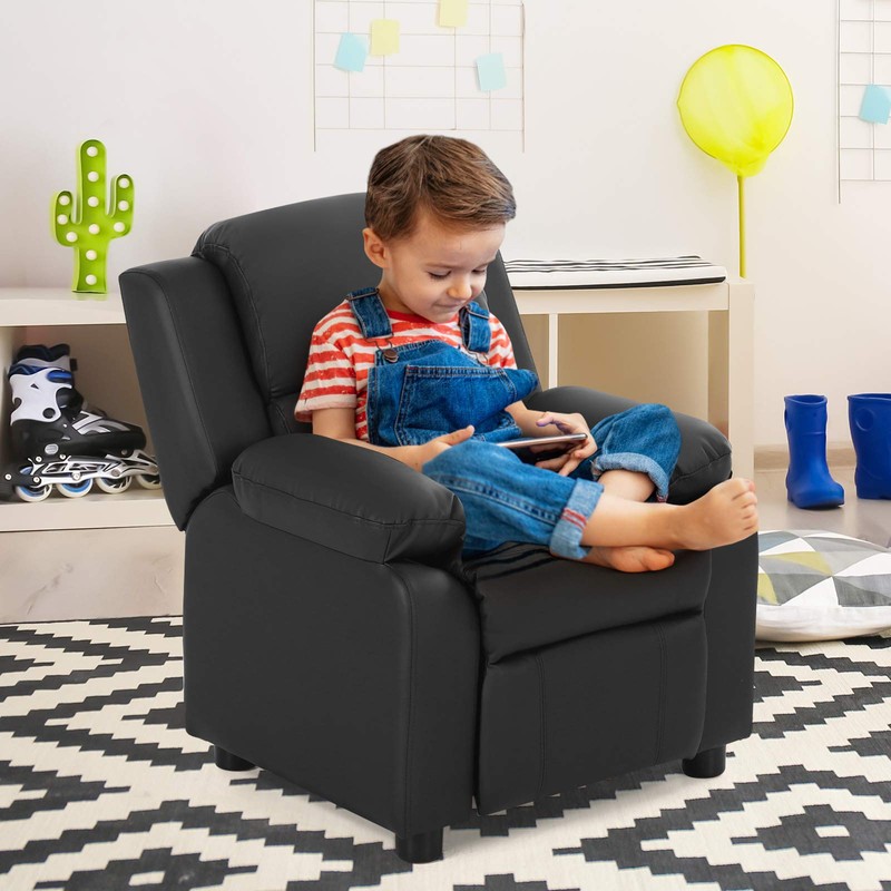 - đ„°ăStreamline Kids ReclinerăThis reclining chair for kids adopts the ergonomically streamline design, which makes your children's spine and arms fit the sofa better, and allows your children to sit on the chair and lean back as far as possible freely. Fits nicely in your living room, child's bedroom, playroom.