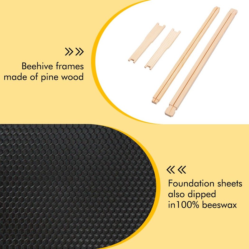 Fit for 8 or 10 Frames Beehive or Super Box. The Frames are made of Premium Pine Wood for Durable.
