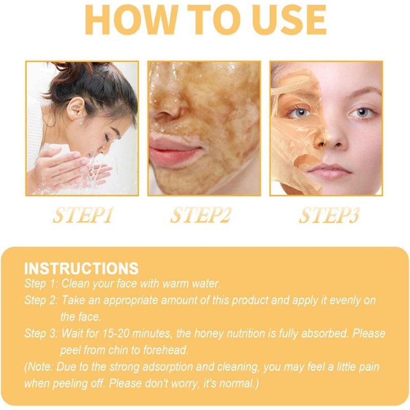 • 【Easy to Use】Apply the honey mask evenly on the face, let it dry for 15-20 minutes, then slowly tear it off from bottom to top, and then wash your face with water. (Notice: Please stop using if your skin feels uncomfortable during use.)