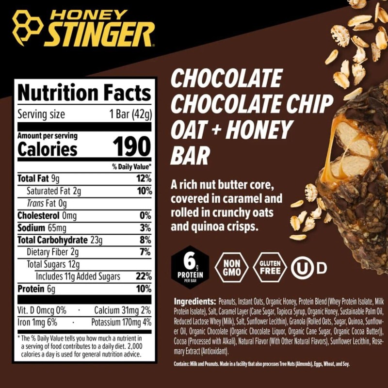 Honey Stinger Oat and Honey Bars - Chocolate Chocolate Chip Box of 12 BB 3/2025
