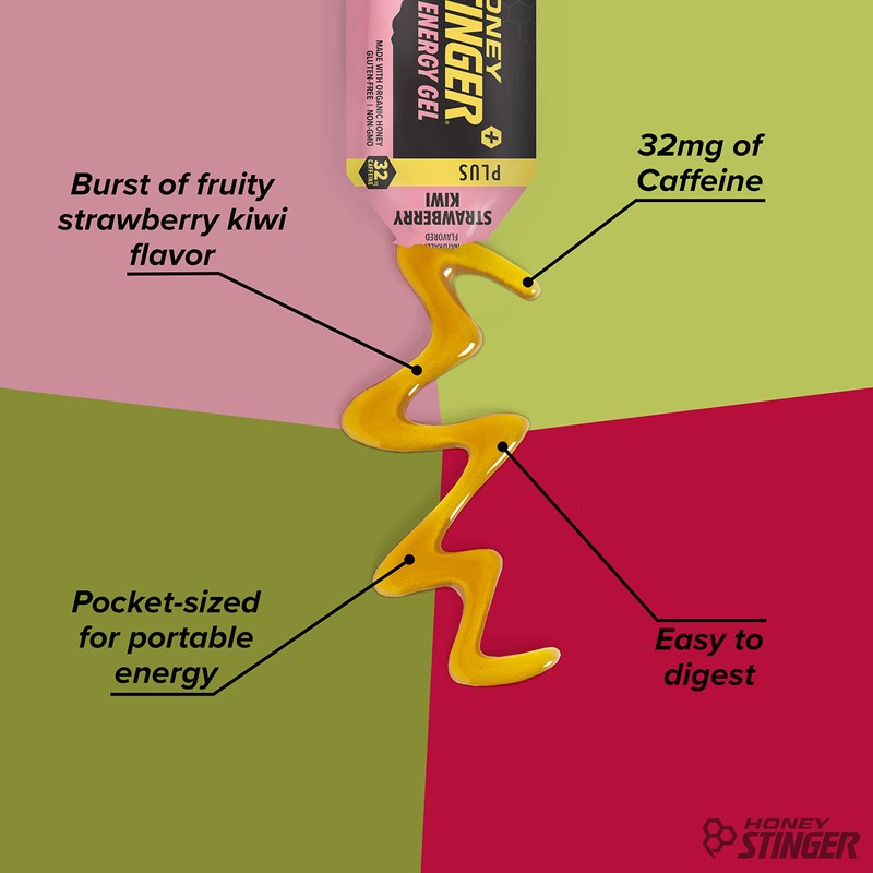 Honey Stinger Organic Strawberry Kiwi Energy Gel | Caffeinated & Gluten Free | For Exercise, Running and Performance | Sports Nutrition for Home & Gym, Pre and Mid Workout | 12 Pack, 13.2 Ounce