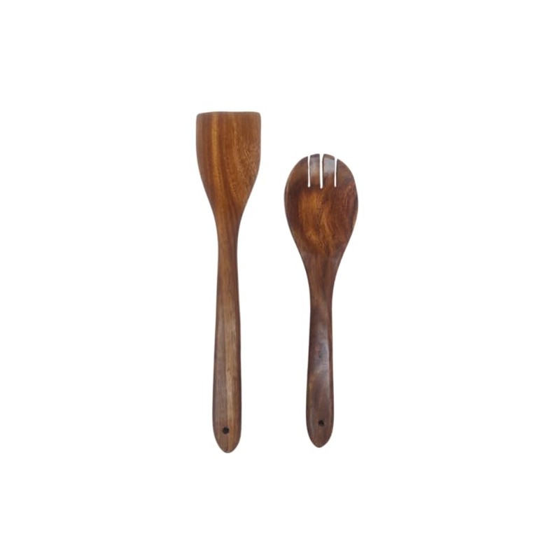 HONEY VELVET Wooden Spatula Spoons Set for Cooking & Serving | Teak Wood Spatulas Utensils for Nonstick Pans & Cookware (Set of 2)