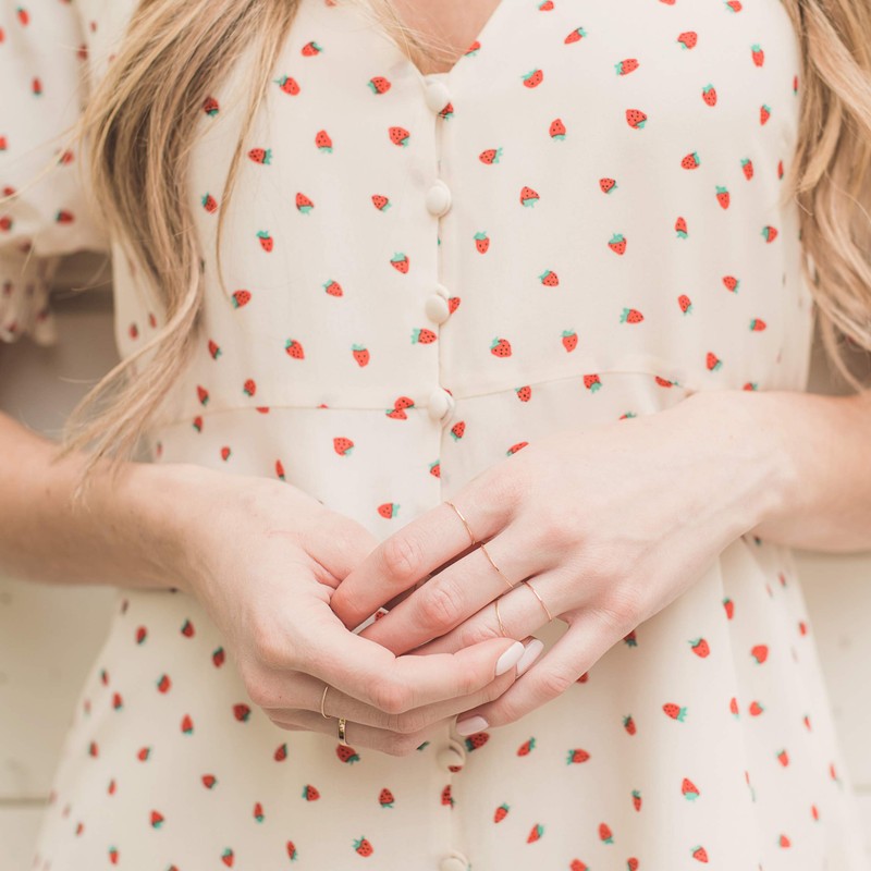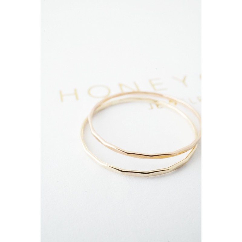 - DESIGN DETAILS: A single, skinny, classic hammered ring in either solid 14k gold or 14k rose gold. This simple ring is equally gorgeous when worn alone as it is when stacked alongside your favorite rings. This delicate piece can be worn on your ring finger, thumb, pointer - wherever! Available in sizes 5 - 9. Band width measures .7mm wide.