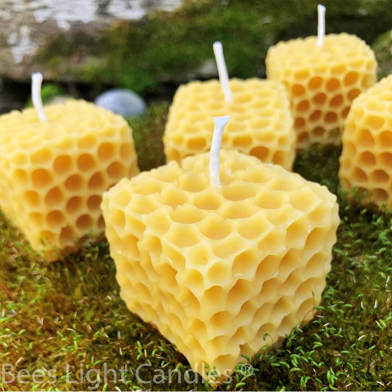 Honeycomb Cube Candle / 100% All Natural Beeswax/Handmade in USA/Bees Wax Honey Comb Square Candles/Bee Box/Spring/Summer/Fall/Garden/Aroma