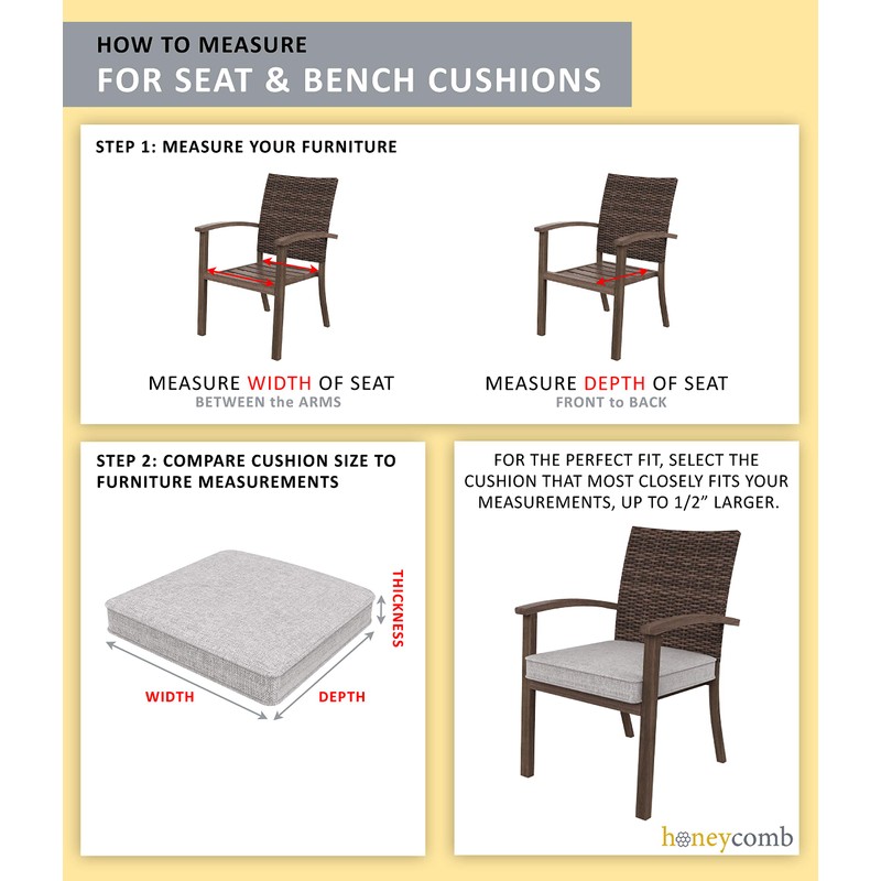 • SUPERIOR SOFTNESS – These Tufted Seat Cushions have polyester filling for superior softness. Our 4-inch outdoor seat cushion is resilient and made to ensure comfort, long life span and improved joint support.