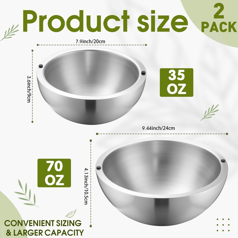 - Package Include: you will receive 2 pack stainless steel double layer dip chiller bowls, serving temperature required food for family gatherings, company events, barbecues, picnics and any type of indoor or outdoor party