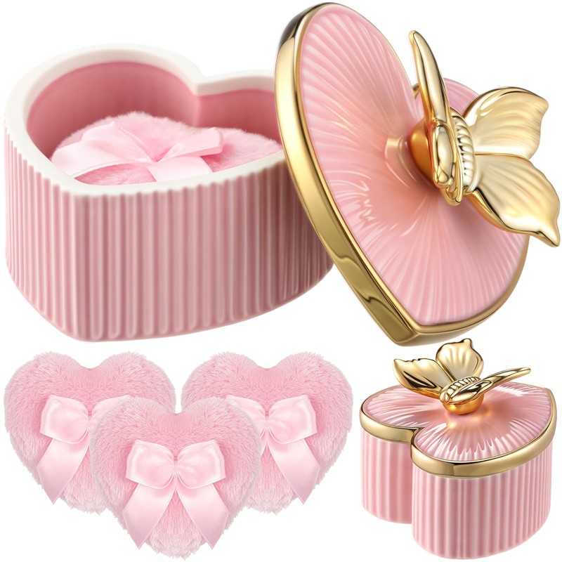 - Charming Design: our powder puff container is designed with an artistic touch, boasting a charming heart shape, further embellished with delicate butterfly decorations; This elegant design not only enhances the product's appeal but also transforms the makeup routine into a luxurious experience