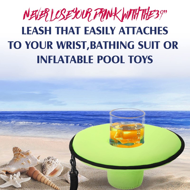 Honeydak Floating Drink Holder 4 Pieces Neoprene Floating Cooler Inflatable Drink Holder Floating Coaster Pool Drink Holder for Pool Party Water Fun(Green)