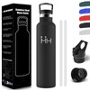 - 2 interchangeable leak-proof bottle lids: (1) The Flip Straw sports cap effortlessly delivers a high flow that allows you to drink stainless steel from your water bottle without removing the cap. (2) Handle Lid: This clasp comes with a carrying ring and a filter. It can block the tea leaves, fruits and ice cubes or something else when drinking.