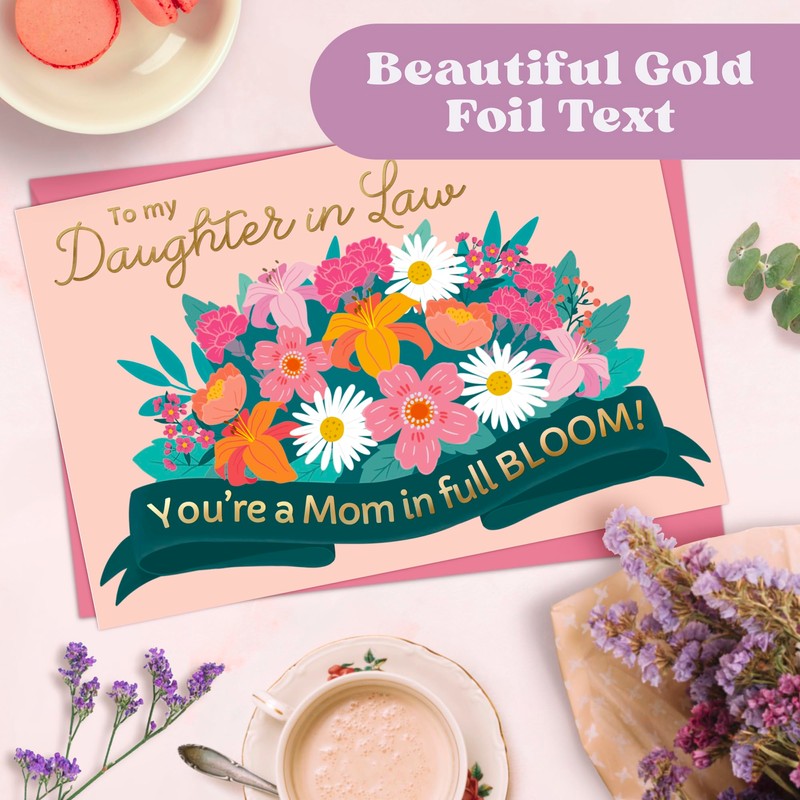 - Elegant Gold Foil Details – The front of the card features stunning gold foil text that adds a luxurious touch, making it a keepsake-worthy gift for your daughter in law.
