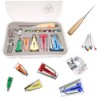 - You will get 4pcs craft clips ,1pc binder foot and awl ,10pcs quilting pins, 5 different size bias tape maker