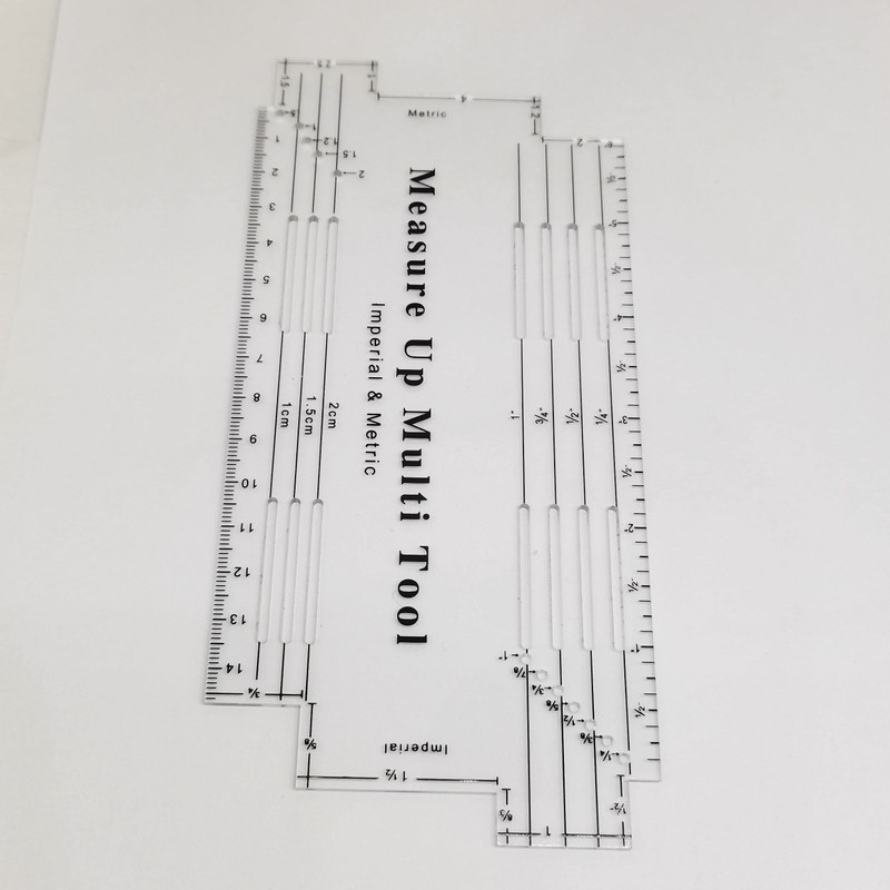 - The Measure Up Multi Tool is a must have in your sewing room! Featuring both imperial and metric measurements, this tool makes it easy for you to convert and measure distances while sewing. You can use this great tool for so many things such as a needle position guide or a seam gauge!