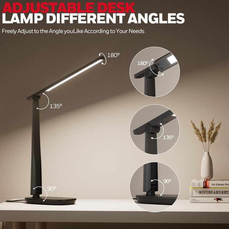 - [Flexible Folding Design for Broader Light Coverage]: Designed to maximize flexibility, the table light features a 90° rotating head, a 136° adjustable arm, and a foldable base, making it easy to position the lamp for desk exactly where you need it. The large 11-inch light panel provides a wide, even distribution of light, ideal for larger workspaces or reading areas