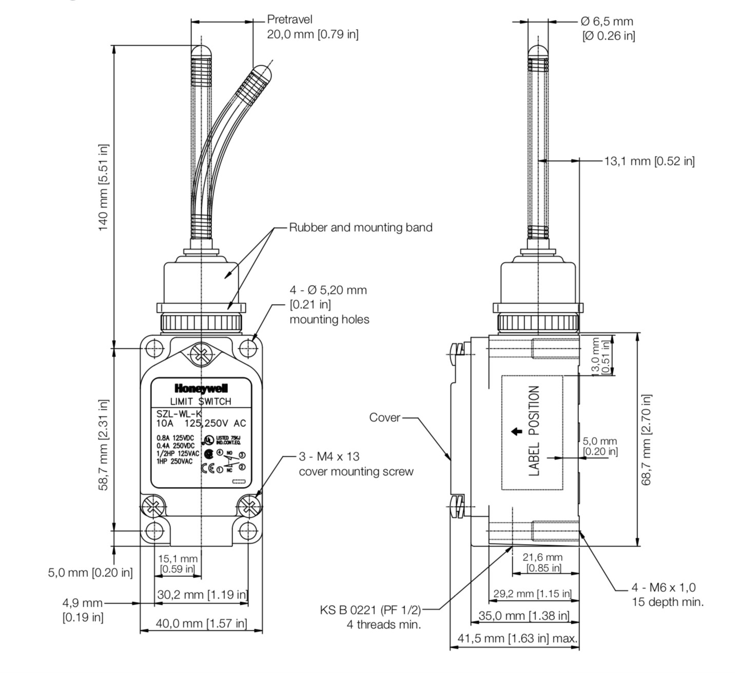 Honeywell SZL-WL-K Wobble Stick Actuator Limit Switch