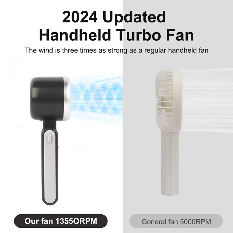 - Strong wind & 5-speed adjustableThe Handheld Turbo Fan has built-in powerful brushless motors, which are powerful enough to stably drive the fan blades to run at high speed to generate strong wind. The portable handheld fan has 5 adjustable wind speeds, You just need to press the power button to change the wind setting, The wind is two times as strong as a regular handheld fan, is strong enough to cool you down quickly.
