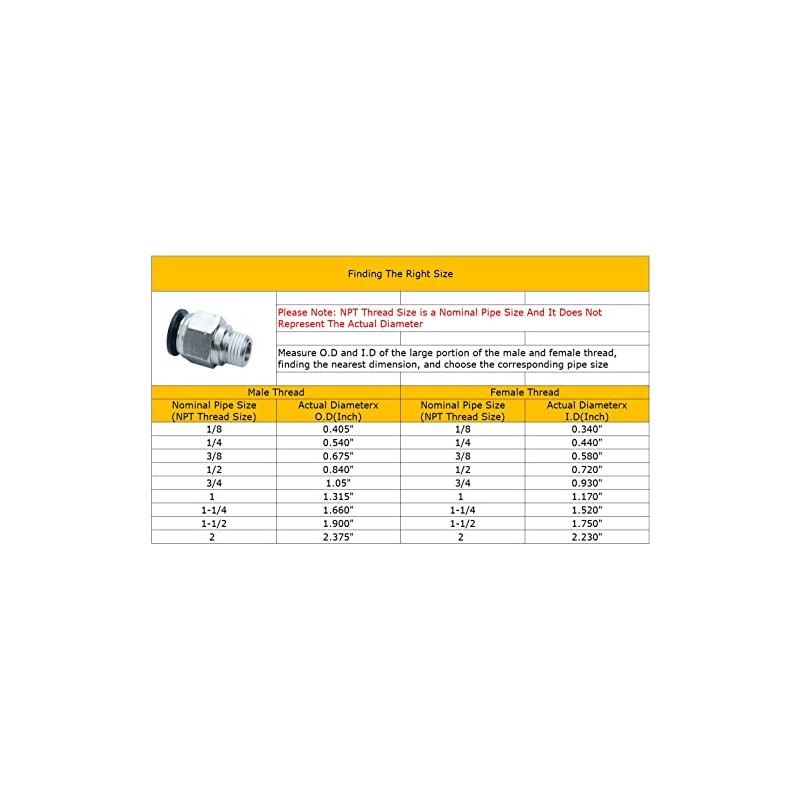 HongBoW Hardware 10 Pcs/Pack Pneumatic Male Straight PC-3/8-N03 Push to Connect Fittings 3/8" Tube OD x 3/8 NPT (Male Thread Dimension: 0.675“)