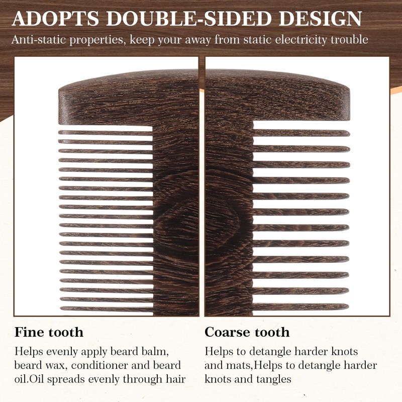 - Suitable for beards, moustaches, and head hair – This perfect wooden comb is ideal for grooming and styling all types of hair! It features a dual-action design with fine and coarse teeth, enhancing hair uniformity, shine, and aesthetics.
