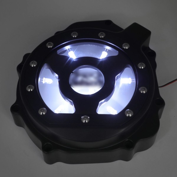 HONGK 2005-2008 Suzuki GSXR1000 Black w/ White LED Left Engine Stator Cover Guard